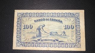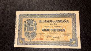 Billete de 100 pesetas emitido por el Banco de España en Gijón en septiembre de 1937.