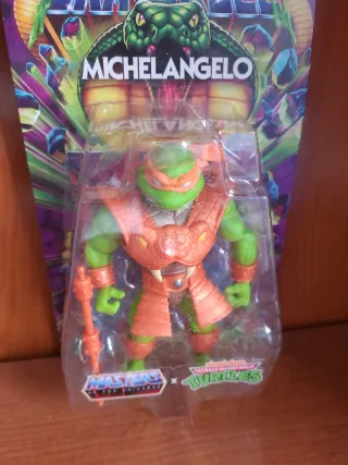 Figura de acción de Michelangelo de la línea Turtles of Grayskull. - Personaje: Michelangelo. - Colección: Turtles of Grayskull. - Incluye accesorio.