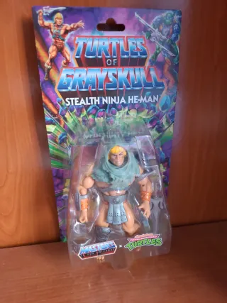 Figura de acción Turtles of Grayskull de Masters of the Universe. - Personaje: Stealth Ninja He-Man. - Diseño inspirado en la fusión de Masters of the Universe y Teenage Mutant Ninja Turtles. - Empaque coleccionable.