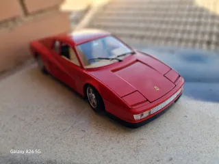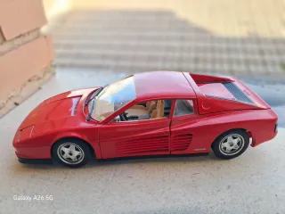Réplica detallada del icónico Ferrari Testarossa en color rojo. Escala 1/18 - Diseño deportivo clásico. - Interior en tono beige.