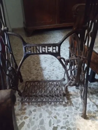 Base de hierro fundido para máquina de coser Singer. Un elemento clásico y robusto. - Fabricada en hierro fundido. - Diseño ornamental. - Incluye pedal.