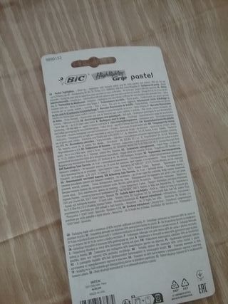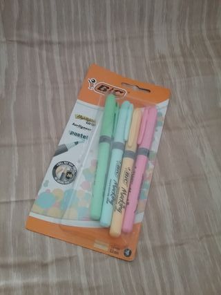 Pack de 4 marcadores BIC en tonos pastel. - Colores: verde, azul claro, amarillo y rosa. - Tinta de secado rápido. - Punta de 1.6 mm y 3.3 mm.
