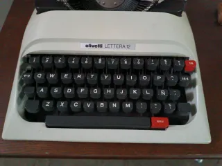 Máquina de escribir Olivetti Lettera 12 en buen estado. - Diseño clásico y funcional. - Teclado QWERTY completo. - Carcasa de color blanco.