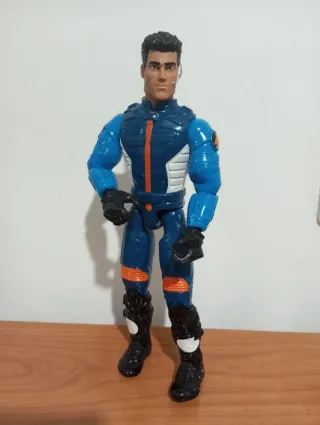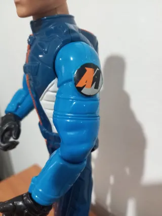 Figura de acción detallada con traje de piloto. - Traje azul y blanco con detalles naranjas. - Casco con micrófono. - Botas negras de combate.