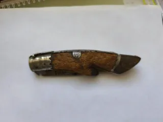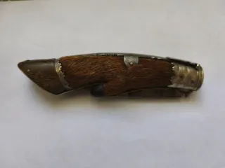 Navaja antigua con un diseño único y original. - Mango elaborado con pezuña de jabato narural - Detalles metálicos en el mango y la punta. - Cuchilla de metal.