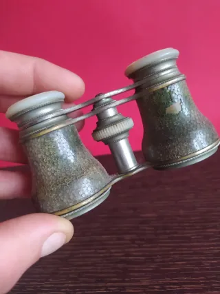 Título: Antiguos Prismáticos de Ópera - Rue de la Paix (París) - Nácar y Piel de Zapa Descripción: Elegantes prismáticos de teatro o ópera de finales del siglo XIX, fabricados en París. Una pieza de coleccionista que destaca por su procedencia: la exclusiva Rue de la Paix. Materiales: Oculares y rueda de enfoque en nácar (madreperla) de gran brillo. Cuerpo revestido en piel de zapa (shagreen) original en color verde esmeralda. Grabado: Inscripción visible del óptico y la ubicación en París (Maison de la Paix). Estado: Tal cual se ve en las fotos. El nácar está muy bien conservado y el mecanismo de enfoque funciona. La piel de z