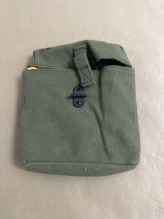 Funda original de lona para prismáticos utilizada en la BRIPAC en los años 80-90. - Color verde militar. - Cierre a presión y trabilla. - Interior forrado.