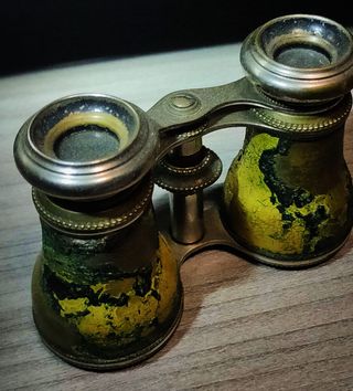 Binoculares Prismáticos antiguos de coleccionista. Acabado Vintage. Lentes limpias. Siglo XX Buen estado Para decoración!