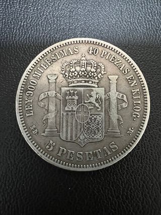 Moneda 5 Pesetas Alfonso XII Rey 1876