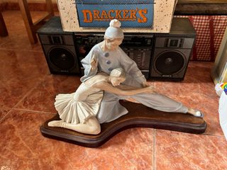 BAILARINA CON PAYASO de LLADRÓ Porcelana. Fabricada en España y se encuentra en excelentes condiciones. No tiene marcas ni ninguna parte picada. Este artículo viene sin caja pero acompañada de la base original de madera y terciopelo marrón. Esta hermosa estatuilla es un objeto de 30x23cm de 1293g. Esta magnífica pieza fue lanzada en 1974 y descontinuada en 1996. El escultor de esta encantadora pieza es Salvador Furio.