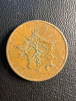 Moneda de 10 francos de la República Francesa con el año 1979. - Diseño con estrella central y motivos vegetales. - Inscripción RÉPUBLIQUE FRANÇAISE en el borde.