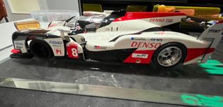 Coche de slot Toyota LMP SRC. - Diseño deportivo y aerodinámico. - Detalles de patrocinadores como DENSO y RAYS. - Número de dorsal 8. Chasis 3d srp Lexan Transmision slotit, eje hueco calibrado