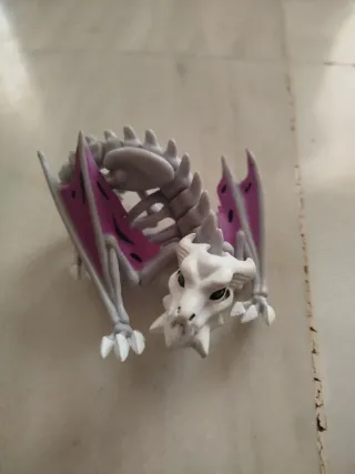 Figura de dragón con diseño de esqueleto. - Alas moradas con detalles. - Ojos verdes. - Cuerpo detallado.