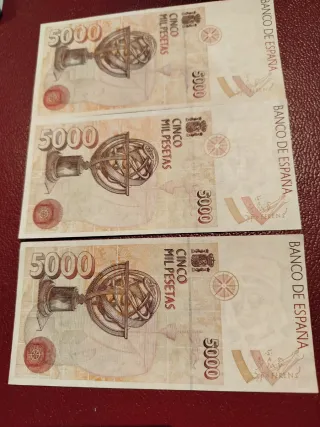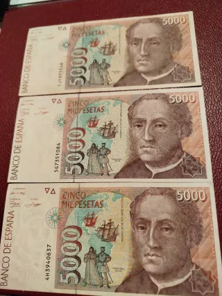 3 Billetes 5000 Ptas. Cristóbal Colón 1992