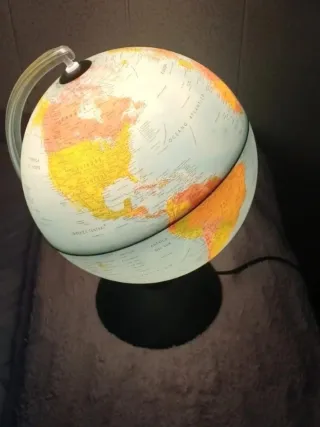 Globo terráqueo con iluminación para ver los países y océanos. - Base estable. - Cable de alimentación incluido.