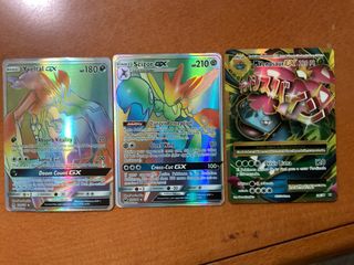 Lote de tres cartas Pokémon. Cada carta vale 40€, SE ACEPTAN OFERTAS - Carta Yveltal GX. 137/131 presenta ligeras manchas por antigüedad - Carta Scizor GX. 175/168 - Carta Mega Venusaur EX. 100/108