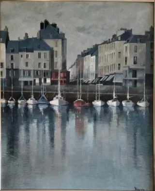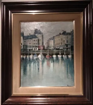 Óleo sobre lienzo de J. M. Vayreda Canadel Firmado.Pintor conocido Mundialmente tiene muchas obras es Estados Unidos.Representa un puerto con barcos y edificios.Port d'Honfleur medidas solo tela 50 x 61cmm con marco 78 x 89 cm. - Firmado por el artista.Por delante y por detrás también titulado. - Marco dorado.Marron