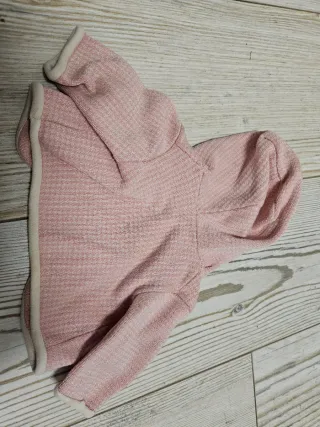 Chaqueta original para Nancy de los años 80. Prenda de ropa en color rosa con ribete blanco. - Cierre con botones. - Mangas largas. - Capucha.