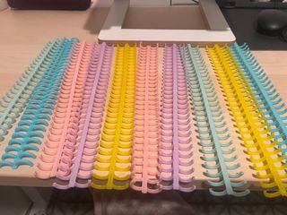 Lote de espirales de plástico para encuadernación. Vienen en varios colores pastel para organizar tus documentos. 10 espirales! - Espirales de plástico. - Colores: azul claro, rosa, lila, amarillo.