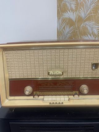 Radio antigua de madera de los años 50 marca ASkAR. Presenta un diseño clásico con detalles en la madera y una pantalla frontal. Nunca se le a tocado para nada - Diseño de sobremesa. - Frontal con dial y botones. - Rejilla de altavoz de tela.