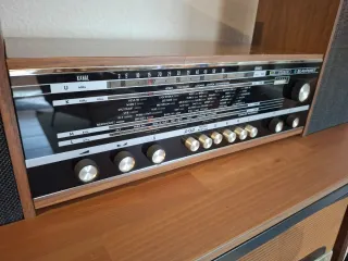 ✅ Ref. E15108 Radio clásica de la marca Blaupunkt de grandes dimensiones de color marrón oscuro. Se trata de una radio antigua que tiene una parte de radio y otra parte con un tocadiscos. La radio funciona correctamente pero la parte del tocadiscos no funciona. Es un objeto perfecto para coleccionistas de este tipo de objetos clásicos. Como se puede observar en las fotografías se encuentra en buenas condiciones. 📐 Medidas (ancho x fondo x alto): 71x31x41cm. Financia tus compras de forma inmediata. Visita nuestra web Cardiffstore o nuestra tienda en Elche (Av. de Sta. Pola, 13); Llámanos o envíanos un WhatsApp.