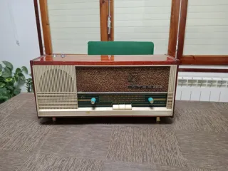 Radio antigua inter multibanda bastante peculiar. Le han hecho algún tipo de modificación para recibir bandas extra. Tiene unos interruptores para hacer algún tipo de ajuste. Uno pone tv, otro pone gc.... Lamentablemente, y no ha sido cosa mía, lo han saboteado. Por algún motivo que solo conoce el perpetrator, le han aplastado el condensador de sintonia. El resto está todo bien, pero no me arriesgo a probarlo. Debido a eso, pongo el precio bajo para un aparato de estos. Evidentemente no doy ningún tipo de garantía..