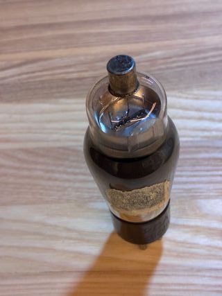Válvula electrónica antigua RCA Radiotron, fabricación USA, años 30. Base de 6 pines con capuchón superior. Conserva precinto fiscal español original de 1 peseta (Impuesto de Circulación) parcialmente visible, algo poco habitual y de gran interés histórico. Pieza muy interesante para coleccionistas de radio antigua o restauradores que busquen material auténtico de época. Estado estético bueno según fotos, con desgaste normal por antigüedad. No probada eléctricamente, se vende como pieza vintage de colección.