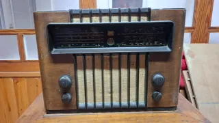 Preciosa radio antigua de sobremesa del año 1948. Exterior de madera, tamaño grande (49x25x35). Es de seis válvulas. En buen estado de conservación. Lleva años sin usarse, se supone que funciona. En la parte de abajo tiene viejos agujeros de carcoma. Pesa casi 13 kilos. No negociable Antiguo antigua antigüedades arcopal art nouveau brocante mueble mimbre bambú ratán cerámica decó colonial contraste hand made artesanal latón duralex lámpara espejo opalina madera colonial boho chic metalarte shabby sol murano Manises marco xix modernista porcelana industrial oro plata de ley dorado cuadro arte interiorismo silla entrada