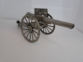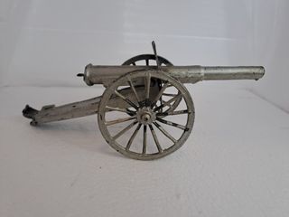 Cañon de plomo. Posiblemente: CAÑON ANTIGUO (1910-1920) OBÚS DE PLOMO DE LA PRIMERA GUERRA MUNDIAL CON ACCIÓN DE RESORTE FRANCE S.R. (SIMON & RIVOLLET) UN ANTIGUO CAÑÓN OWITZ DE PLOMO FUNDIDO DE LA PRIMERA GUERRA MUNDIAL (VER LAS RUEDAS DE RADIOS) CON ACCIÓN DE MUELLE (PUEDE DISPARAR ) CON CARRETERA DE MUNICIONES FABRICADO POR LA COMPAÑÍA FRANCESA SIMON & RIVOLLET (S.R.), QUE FABRICÓ JUGUETES DE PLOMO Y ESTAÑO FUNDIDOS ENTRE 1890 Y 1920 SIMON & RIVOLLET br>18 CM DE LARGO X 8 CM DE ALTO X 6.5 CM DE ANCHO ALGUNOS RASGUÑOS Y MANCHAS. ESTRUCTURALMENTE EN BUEN ESTADO. LE FALTA UN RADIO. El obús de resorte sigue funcionando