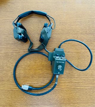 Auriculares militares originales modelo SPS-TPV-1428, con diadema metálica ajustable, auriculares acolchados, micrófono integrado y caja de control de volumen. Incluyen cable con conector militar multipin. 🔹 Perfectos para coleccionistas de militaria y aficionados a la radio antigua. 🔹 Ideales como pieza de decoración retro/vintage o para escaparates de estilo industrial. 🔹 Estado original, sin probar. auriculares militares, cascos vintage, radio militar, retro, decoración militar, coleccionismo, ejército, antigüedades,