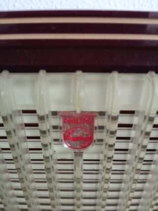Radio antigua Philips en buen estado. Presenta un diseño clásico y elegante. - Marca: Philips - Modelo: (A determinar) - Material: Parece ser baquelita. - Tiene desgaste por el paso del tiempo.