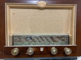 Radio antigua de la marca Philips con tecnología de válvulas. Sin probar, desconozco si funciona. Requiere revision tecnica , exteriormente en perfecto estado - Carcasa de baquelita en color marrón oscuro. - Frontal con rejilla protectora del altavoz. - Dial de sintonización con escalas. - Mandos giratorios para ajuste.