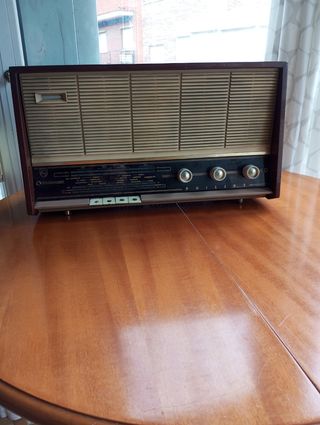 Envío certificado y asegurado gratuito fuera de wallapop, previo pago por bizum o transferencia. Solo Península, resto preguntar. Preciosa radio fabricada en 1962/63 por la alemana Philips Radio, modelo Gemma 322 B3W22A Destaca la palanca de aspecto futurista que al subir o bajar permite el cambio de banda y con un botón en el medio que al presionarlo enciende y apaga la radio. Incorpora la válvula denominada ojo mágico como indicador de sintonía. Realizado en madera, el estado del mueble y las vetas son especialmente bonitos. Funciona perfectamente aunque sólo sintoniza la FM. Puedo enviar video de funcionamiento.