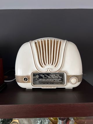 Radio antigua de la marca Telefunken, ideal para decoración. - Diseño retro. - Color crema y detalles dorados. - Frontal con dial y botones.