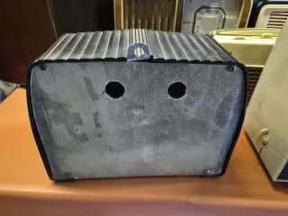 Radio antigua de la marca Telefunken. Un clásico para coleccionistas. - Diseño retro plateado y negro. - Dial con bandas FM, Canal, Media y Corta. - Mandos de sintonía y volumen.