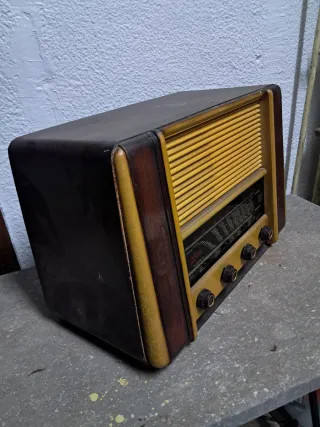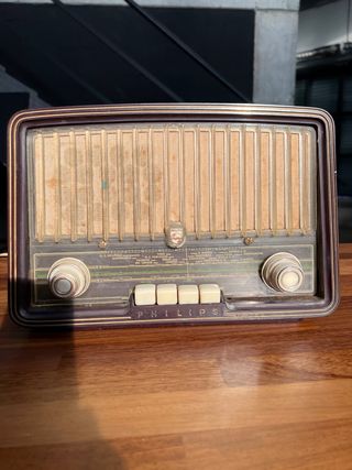 📻 Radio antigua Philips de válvulas – años 50 – para restaurar Radio original Philips de válvulas, fabricada a principios de los años 50. Modelo europeo clásico con ondas largas, medias y cortas, escala con ciudades y diseño vintage auténtico. 🔹 Estado: No funciona (ideal para restauración o colección) 🔹 Conservación: Completa, original, sin restaurar ni manipulaciones 🔹 Estética: Buen estado general para su edad, con desgaste normal del tiempo 🔹 Época: 1951–1954 Mueble de madera y frontal original. Perfecta para coleccionistas, decoración vintage o proyecto de restauración. ⚠️ No se ha enchufado recientemente porque va a 125V