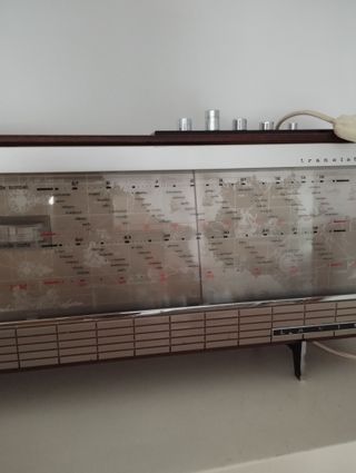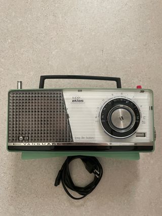 Radio transistor domestica de 1968 marca Iberia modelo RP/131, capaz de sintonizar AM. No se si funciona, de 145x86x43 mm de tamaño, ver fotos. Para coleccionistas, con ese diseño típico de los años 60. Tengo otra radio en mi perfil, pero es mas profesional, de radiofrecuencias de todo tipo. Prefiero venta en mano. Tags. Vinilos radio casette casete CD vintage antigua viejo aiwa pioneer thorens transrotor transistor walkman radio tecnia historia sonido audio decibelios EAT Sony Samsung getta sonar decoración laboratorio idiomas 1710 radioaficionado frecuencia modulada 6