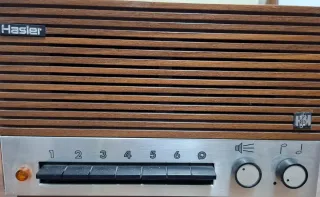 Radio antigua con un diseño clásico y elegante. ORIGINAL Modelo 610/6 - Altavoz frontal con rejilla. - Dial de sintonización. - Botones de control. Funciona con un transformador de 125W