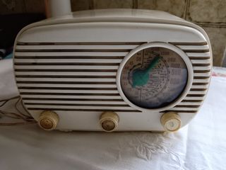 Radio antigua de válvulas de los años 50. - Radio de válvulas de los años 50. - Color blanco. - Diseño clásico.