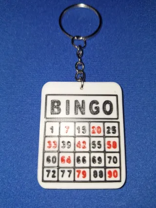 Llavero con diseño de cartón de bingo, ideal para personalizar. - Diseño de cartón de bingo. - Material resistente. - Personalizable por detrás con tu nombre, o lo que prefieras. Envíos a partir de 5 unidades. La unidad sale a 3,5€.