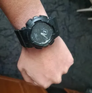 Reloj Casio G-Shock con resistencia al agua de 20 bares. - Correa de resina negra. - Esfera analógica y digital. - Diseño robusto y deportivo.