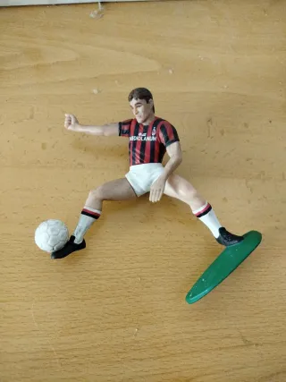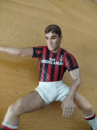 Figura de colección de Marco Van Basten, año 1989. Representa al jugador en acción con el uniforme del AC Milan. - Uniforme a rayas rojas y negras. - Pantalón blanco. - Mediolanum patrocinador en la camiseta.