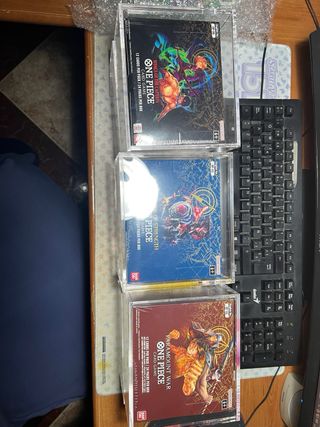 Tres cajas de cartas coleccionables de One Piece. - Caja The Best Prb02 - Caja Anime 25th Collection (EB-01) - Caja Paramount War (OP-02 Perfectamente selladas y con acrílicos incluidos