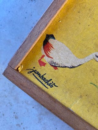 Bonito frutero antiguo con un diseño pintado a mano. 30cm x 15cm - Decoración floral y de frutas. - Borde con detalles en verde. - Diseño rústico y artesanal. Con algunos desperfectos debido al paso del tiempo.