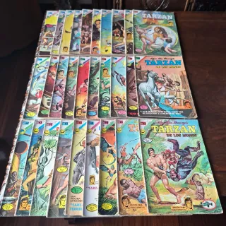 Colección de 29 cómics Tarzán de los monos. Edgar Rice Burroughs. 29 números comprendidos entre el 300 y 350. En buen estado teniendo en cuenta que tienen mas de 50 años. Posibilidad envíos Wallapop. ● Disponibles otros 26 entre los números 351 y 400.