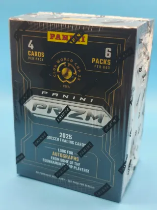 Caja de cartas de fútbol Panini Prizm Club World Cup 2025. - 6 paquetes por caja. - 4 cartas por paquete.