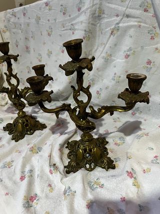 Pareja Candelabros Bronce Vintage