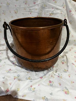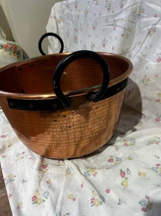 Olla o caldero de Cobre con Asas Hierro Forjado