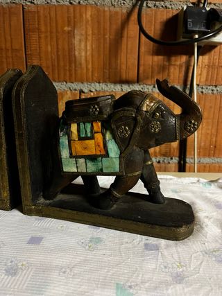 Pareja sujetalibros elefante antiguo