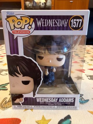 Figura Funko Pop de Wednesday Addams, número 1577 de la línea Television. - Personaje: Wednesday Addams. - Serie: Television. - Número de coleccionista: 1577. - Nueva nunca de ha sacado de su caja